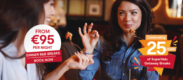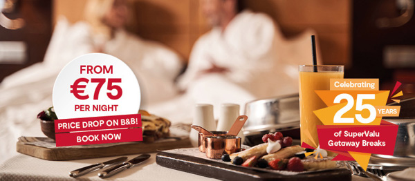 SuperValu Getaway Breaks is the official accommodation partner of Irish retailer SuperValu. We provide the best selection of hotel deals in Ireland at prices you can afford. We provide an extensive selection of Irish hotels around the country offering discounts as high as 60% compared to major hotel booking websites. Choose from cosy affordable 3-star hotels in Kilkenny, Cork, Laois and county Dublin or treat yourself to some of our 5 star luxury hotels in Dublin City centre, Kerry and Galway. We have stunning discounts on luxury hotels like Johnstown Estate in Meath or the best in discounted family friendly deals like the Inn at Dromoland.